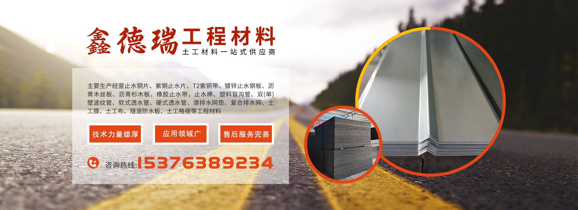 公司主要生產(chǎn)有止水銅片、紫銅止水片、T2紫銅帶、鍍鋅止水鋼板、瀝青木絲板、瀝青杉木板、橡膠止水帶,止水棒、塑料盲溝管、雙(單)壁波紋管、軟式透水管、硬式透水管、滲排水網(wǎng)墊、復(fù)合排水網(wǎng)、土工膜、土工布、隧道防水板、土工格柵等。產(chǎn)品廣泛應(yīng)用于水利、鐵路、隧道、高速公路、垃圾填埋場(chǎng)、人工湖、河道等基礎(chǔ)建設(shè)工程,經(jīng)檢機(jī)構(gòu)檢測(cè),產(chǎn)品性能優(yōu)先與國(guó)內(nèi)同類(lèi)產(chǎn)品,以?xún)?yōu)良穩(wěn)定的產(chǎn)品質(zhì)量、合理的價(jià)格和良好的售后服務(wù)獲得了廣大客戶(hù)的認(rèn)可和好評(píng),是廣大客戶(hù)商值得信賴(lài)的合作伙伴。公司的誠(chéng)信、實(shí)力和產(chǎn)品質(zhì)量獲得業(yè)界的認(rèn)同。